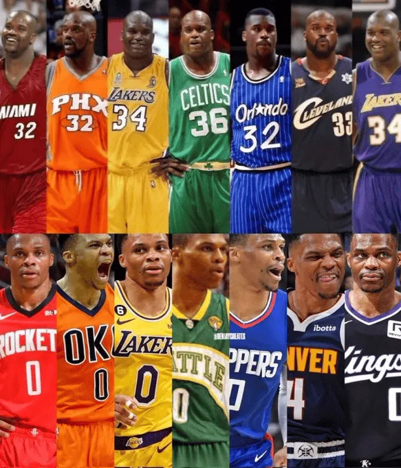 虎扑10月16日讯 媒体NBA Memes更新社媒,晒出一张拉塞尔-威斯布鲁克和奥尼尔的球衣照片。