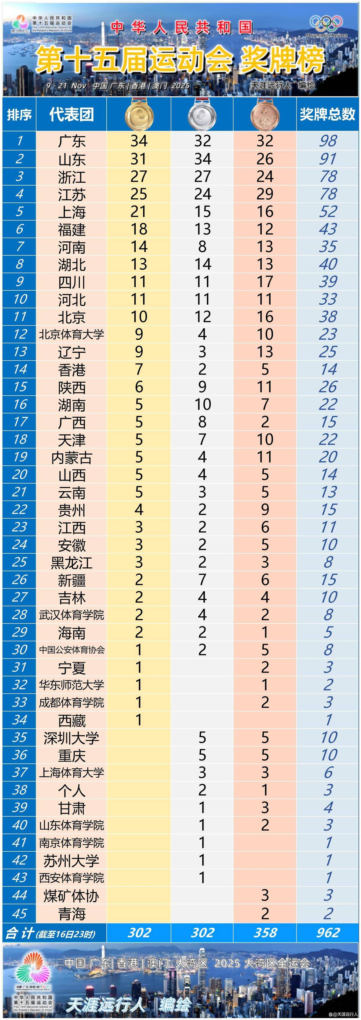 相比之下,山东队在经历了11月14日金牌零收获的窘境后,近两日的表现仍然有些低迷,连续三日奖牌数仅为区区6枚,这与他们往日的辉煌形成了鲜明对比。在最新的全运会金牌奖牌榜上,山东队在金牌数、铜牌数和奖牌总数上均全面落后于广东,亟需重振旗鼓。